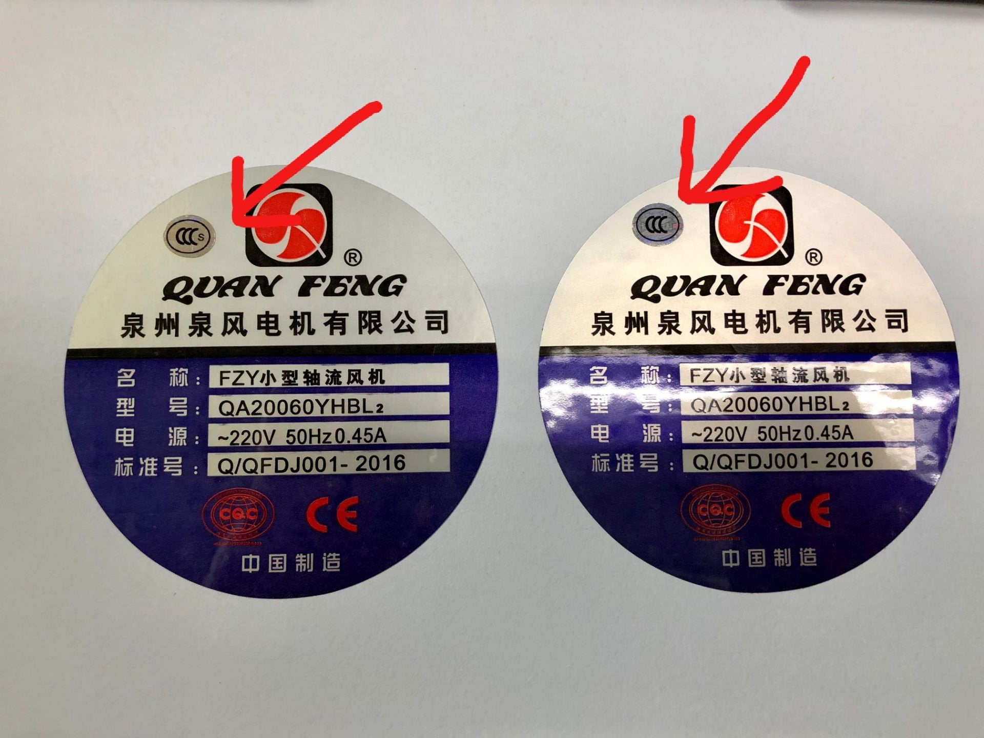 泉州泉風電機所以系列產(chǎn)品,產(chǎn)品商標上所貼CCC標志,在一段時間內(nèi)會出現(xiàn) CCCs和CCC,兩種標志。